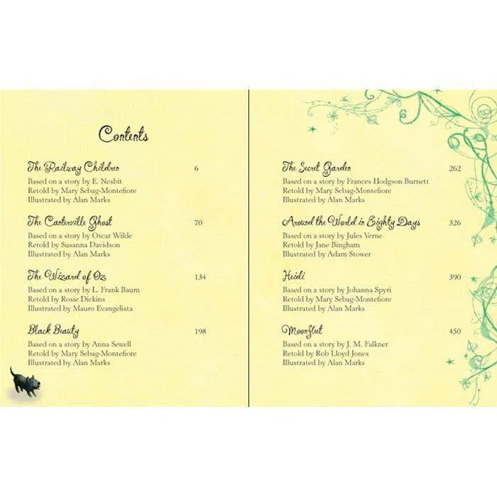 Stories include: The Railway Children, The Canterville Ghost, Black Beauty, The Wizard of Oz, The Secret Garden, Around the World in Eighty Days, Heidi and Moonfleet.