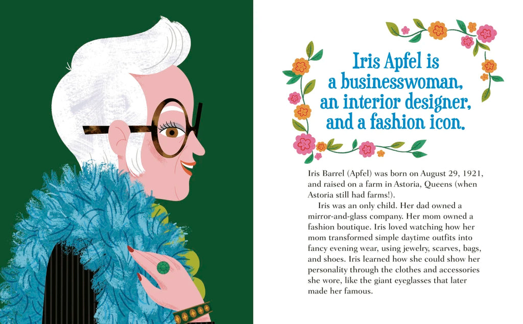 This Little Golden Book about Iris Apfel—businessperson, interior designer, and fashion icon who captivated the world with her colorful and unique style—is an inspiring read-aloud for young children.