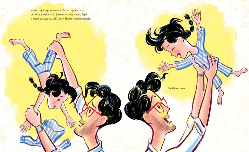 Bedtime routines get a jolt of silliness and creativity when a dad and daughter face off in this timeless scenario.