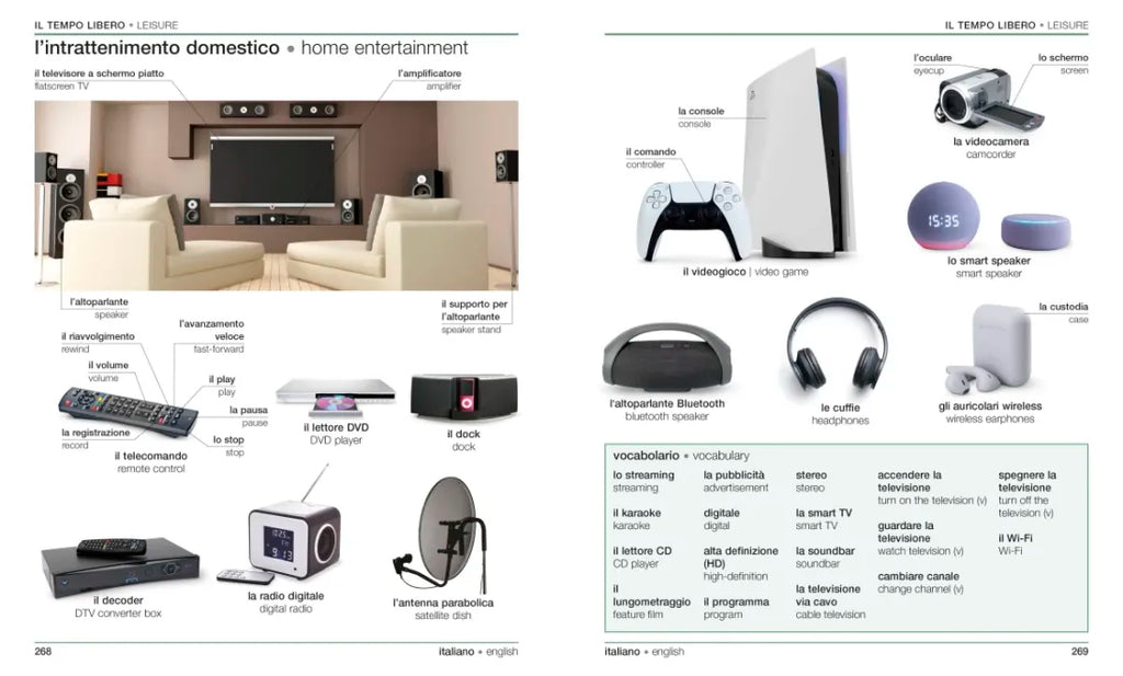 Learn more than 10,000 of the most useful words and phrases in Italian with this illustrated dictionary for Italian-language students.