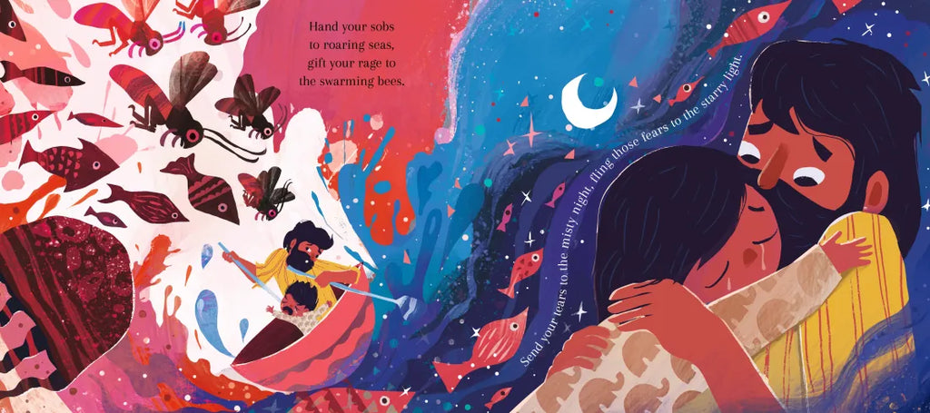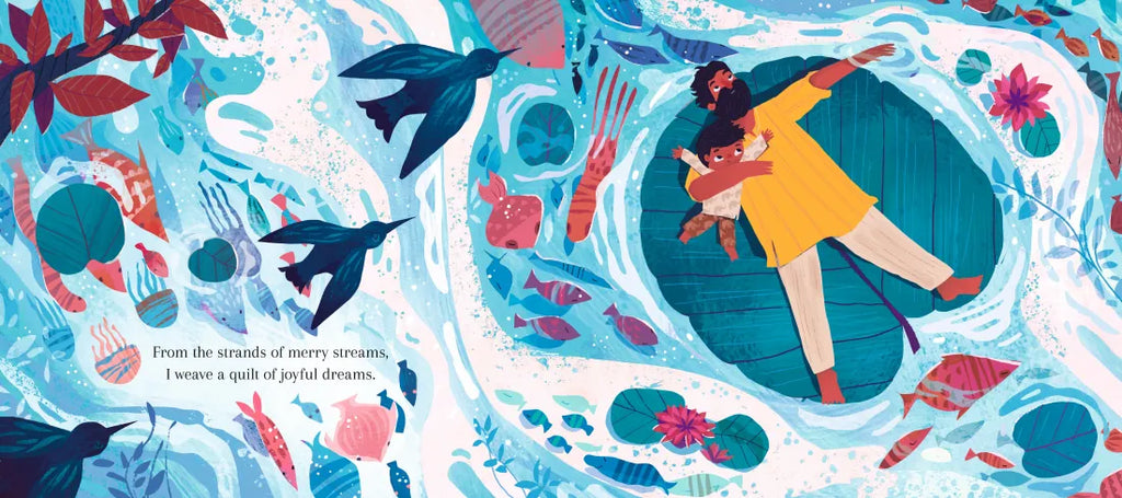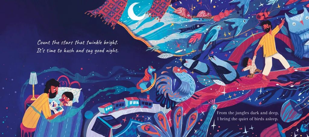 Travel a lush dreamscape world as a father soothes his toddler toward sleep, weaving a quilt of dreams across the roaring seas and through the inky night—and dealing with some big toddler emotions along the way. Sumptuously illustrated by Sandhya Prabhat, this dream-ride of a bedtime book, written by renowned author Chitra Soundar and inspired by ancient Indian lullabies, is sure to leave little ones drifting toward a joyful sleep.