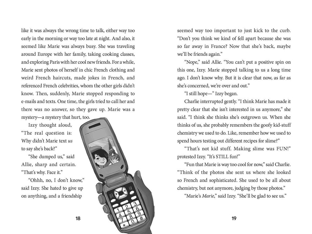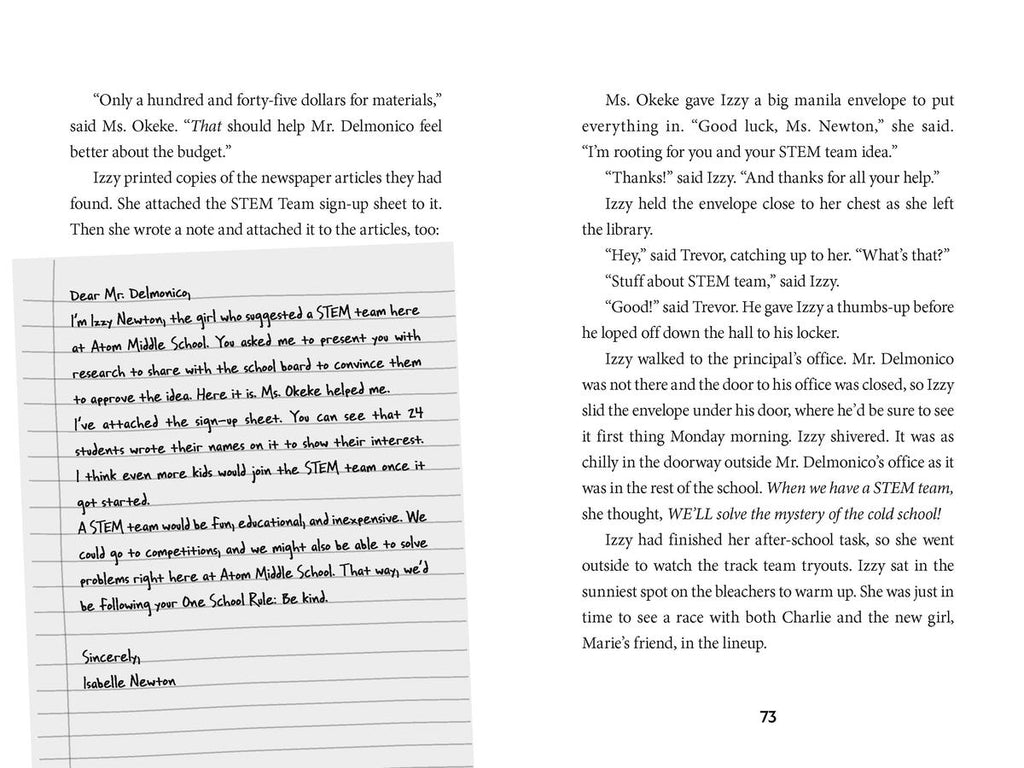 A crowded new school and a crazy class schedule is enough to make Izzy feel dizzy. It may be the first day of middle school, but as long as her best friends Allie Einstein and Charlie Darwin are by her side, Izzy knows it'll all be okay. However, first-day jitters take an icy turn when Izzy's old pal Marie Curie comes back to town. Instead of a warm welcome, Marie gives her former pal the cold shoulder. The problems pile up when the school's air-conditioning goes on the fritz and the temperature suddenly drops to near freezing. The adults don't seem to have a clue how to thaw out the school. Cold temperatures and a frigid friendship? Izzy has had enough of feeling like an absolute zero. She rallies the girls to use their brainpower and science smarts to tackle the school's chilly mystery ... and hopefully to fix a certain frozen friendship along the way. Will the girls succeed and become the heroes of Atom Middle School?