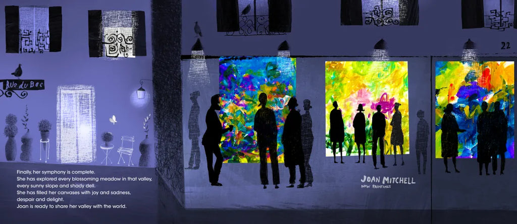 It’s 1983, and American artist Joan Mitchell is in her studio outside Paris, transforming her emotions and memories into a symphony of colors and shapes. Inspired by her friend’s description of an idyllic hidden valley in France, Mitchell creates 21 massive paintings—her Grande Vallée series —bursting with vibrant, energizing hues. But she doesn’t paint the valley’s flowers and meadows. She paints a feeling about them—abundance, freedom, liveliness—creating a harmonious blend of drips, splashes, and brushstrokes in rainbow colors. When the paint dries, it's time to share her valley with the world.
