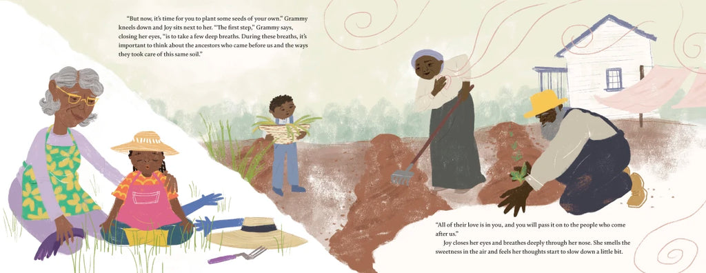There in Grammy's abundant backyard, Joy learns to listen for the heartbeat of the earth and connect it to her own as she takes deep breaths and puts her intentions into the soil. By the story's end, she learns to grow seeds in her own garden, honoring all that her grandmother taught her. With sensory-rich illustrations from award-winning illustrator Ashleigh Corrin, Joy Takes Root is a blissful reminder of all that might bloom.