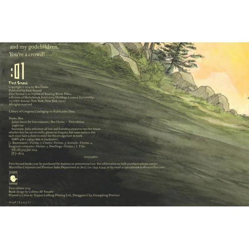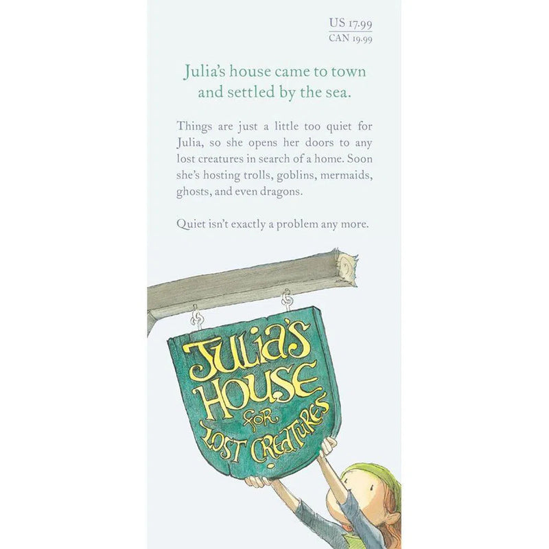 When Julia and her walking house come to town, she likes everything about her new neighborhood except how quiet it is! So Julia puts a sign up: "Julia's House for Lost Creatures." Soon she's hosting goblins, mermaids, fairies, and even a dragon. Quiet isn't a problem anymore for Julia...but getting her housemates to behave themselves is!