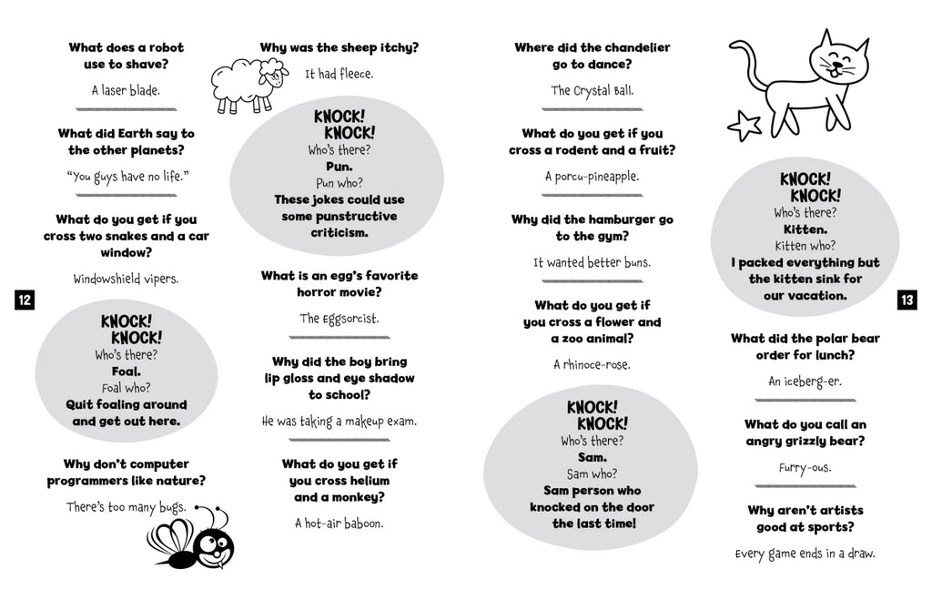 With more than 500 jokes to make kids laugh out loud, this portable and affordable joke book is the perfect entertainment for long car rides, family vacations, and everyday errand runs.