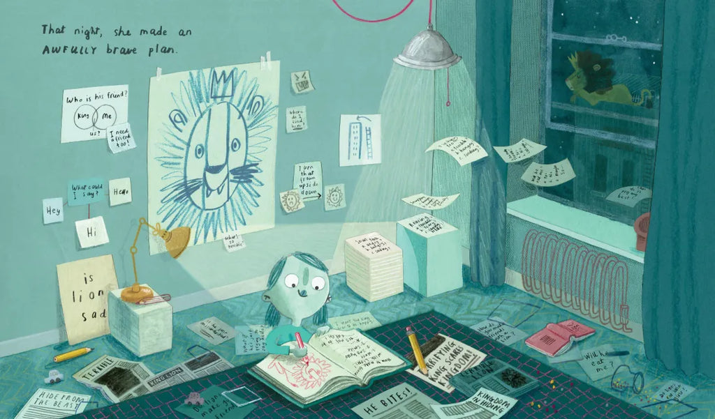 The lion is King and everyone in his kingdom is happy. Everyone, that is, except King Lion himself. The king feels lonely and decides he needs a friend. He tries everything: roaring “hello”, waving his paws, flashing a smile and even cracking a joke. But everyone just runs away. Then, feeling lonelier than ever, the king climbs up the tallest tower in his kingdom and roars and roars and ROARS! Now no one in the kingdom is happy. Until a little girl sees the king and comes up with a very brave plan to help him. A joyful, touching and vibrantly illustrated story.