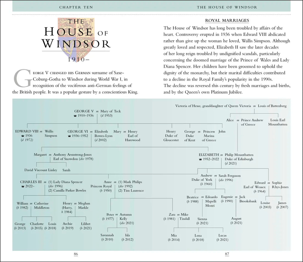 Year-by-year chronologies reveal the major events of each monarch’s reign, while family trees trace the royal lineage and claim to the throne of each royal house. This new edition features recent royal events, including the passing of Queen Elizabeth II, and a biography of King Charles III. With crisp biographies of each sovereign, illustrated with contemporary portraits, painting, or statues.
