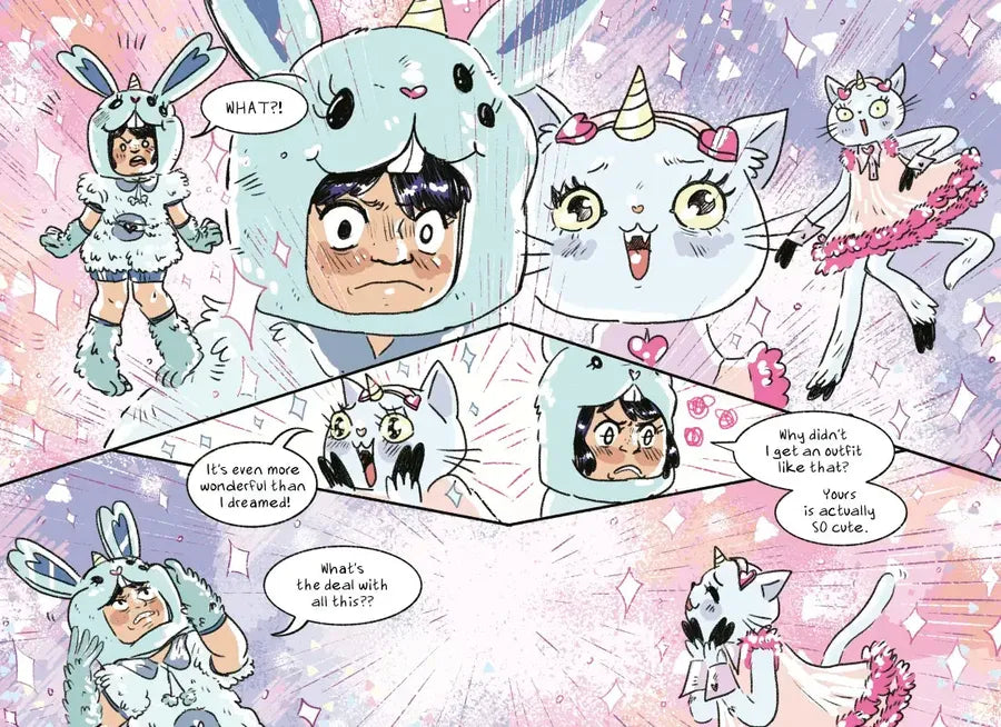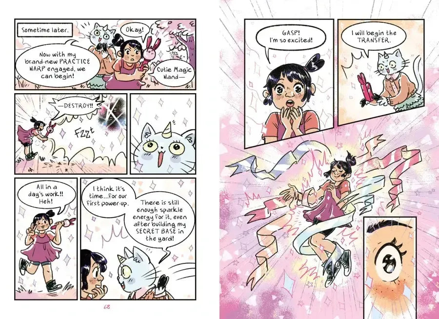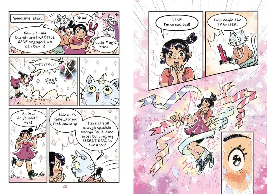 Fashionable fights, flashy attacks, and friends that are out of this world! This wacky and funny graphic novel series is a love letter to manga fans. With a tongue in cheek humor and delightfully fun action scenes, this series is perfect for fans of Sailor Moon, Cardcaptor Sakura, and Katie the Catsitter.