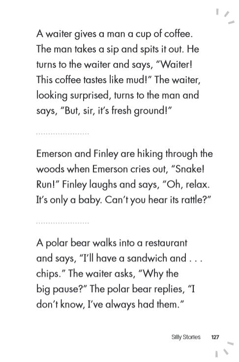 Early reader–friendly: Tailored to early and reluctant readers, the book begins with bite-sized jokes and progresses to full-page stories, making reading fun and easy for those just getting started.