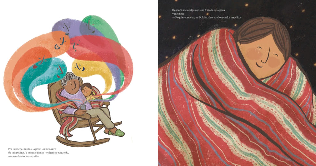 It’s been three years since Abuela’s last visit, and Dulce revels in every tiny detail—from Abuela’s maletas full of candies in crinkly wrappers and gifts from primos to the sweet, earthy smell of Peru that floats out of Abuela’s room and down the hall. But Abuela’s visit can’t last forever, and all too soon she’s packing her suitcases again. Then Dulce has an idea: maybe there are things she can gather for her cousins and send with Abuela to remind them of the U.S. relatives they’ve never met. And despite having to say goodbye, Abuela has one more surprise for Dulce—something to help her remember that home isn’t just a place, but the deep-rooted love they share no matter the distance.
