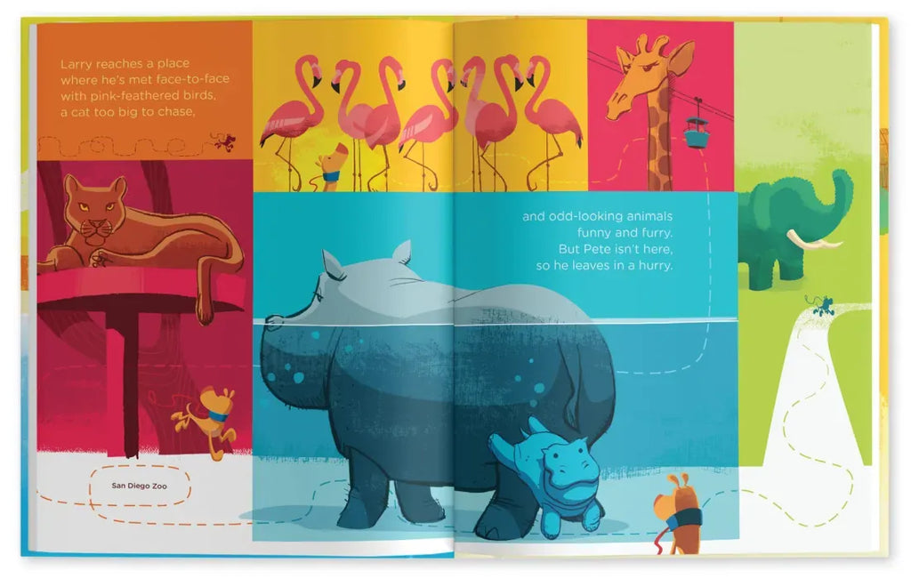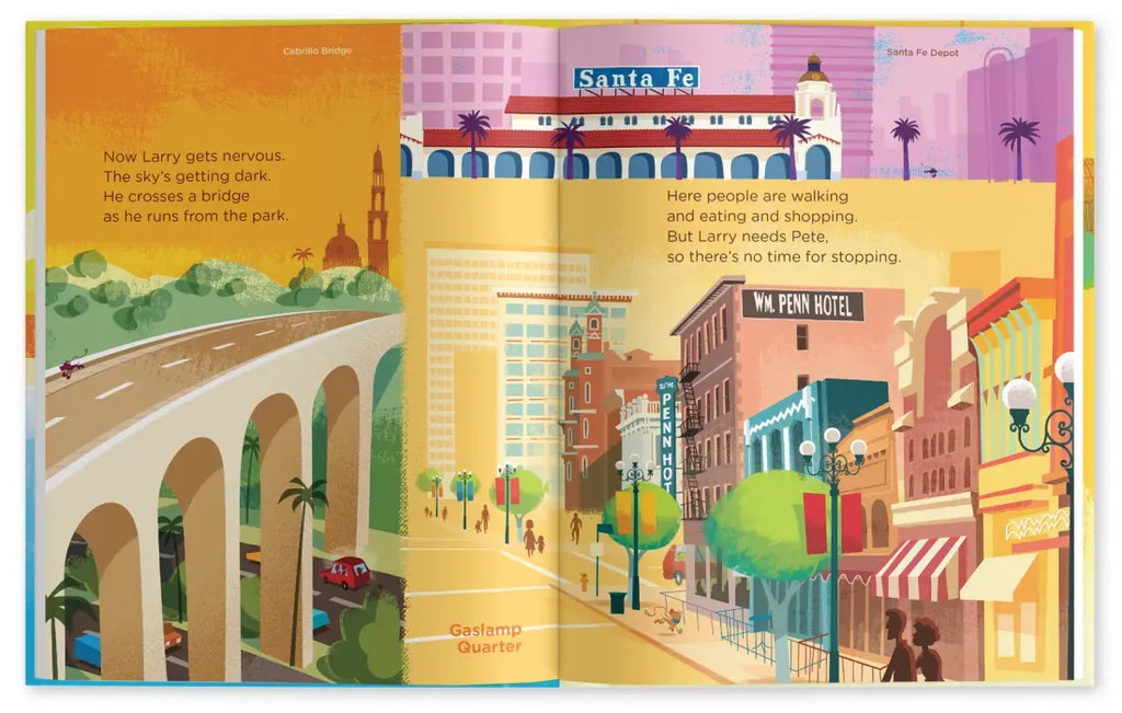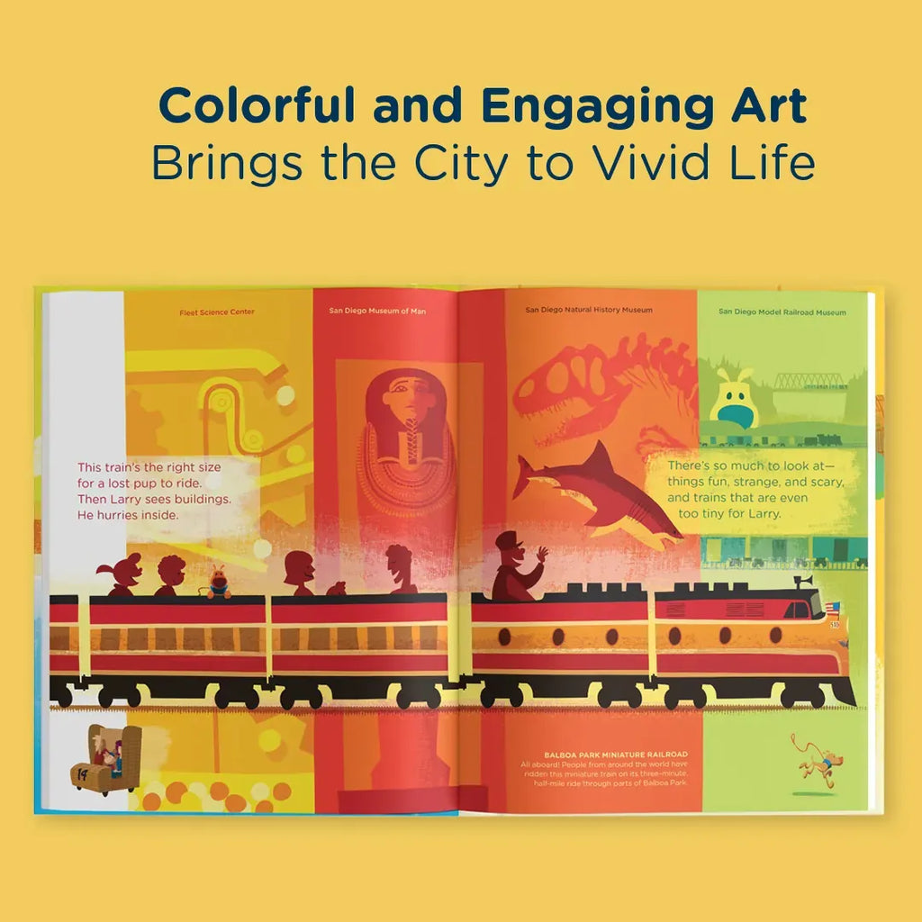 Larry, a playful pup, loves to go on vacation with Pete and the family. In this new edition to the series, they are off to San Diego, where, while running on the beach, Larry is distracted by the smell of a delicious barbecue. After finishing his treat he realizes he's lost his family--again! And so begins his search for Pete around the city's greatest landmarks and attractions, including the San Diego Zoo, Balboa Park, Mission Beach, Gaslamp Quarter, Legoland, Point Loma Lighthouse, and more.