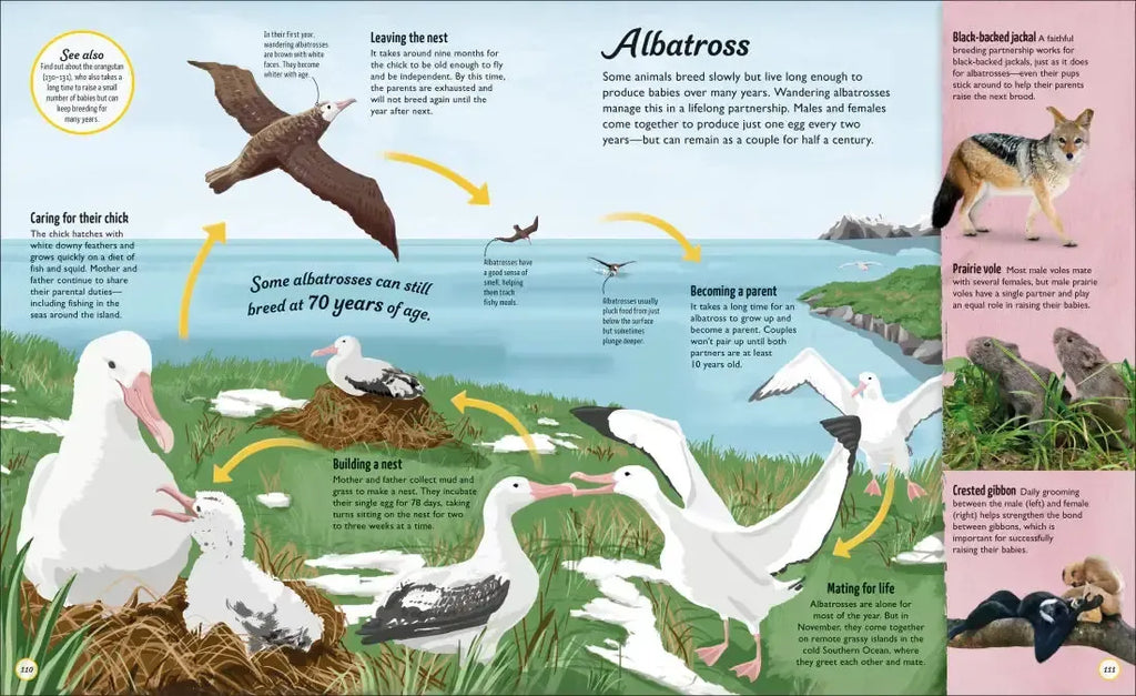 • Stunning photographs that capture key moments during a life cycle, like penguin chicks huddling together to keep warm and the beauty of an orchid in full bloom
