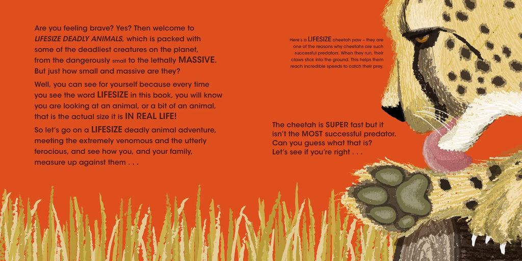 This interactive non-fiction adventure features LIFESIZE illustrations of some of world’s smallest and largest deadly animals and invites children to think about how they compare with these amazing creatures.