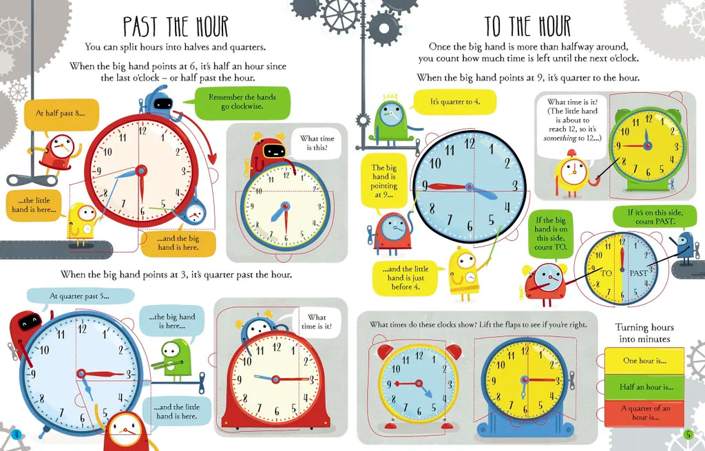 What does that clock say? When are 12 a.m. and 12 p.m.? And how long is a century? With bright illustrations, quirky characters and over 125 flaps to lift, this book makes learning about time easy and fun. It covers how to read ALL kinds of clocks, analogue and digital, and even with Roman numerals. It also explains how to use timetables and calendars, and related concepts and vocabulary - such as what is a fortnight, a decade or how many days there are in a leap year. At the end, a specially engineered page lets readers assemble a clock with moving hands, which they can use to practise their skills in a time-telling challenge.