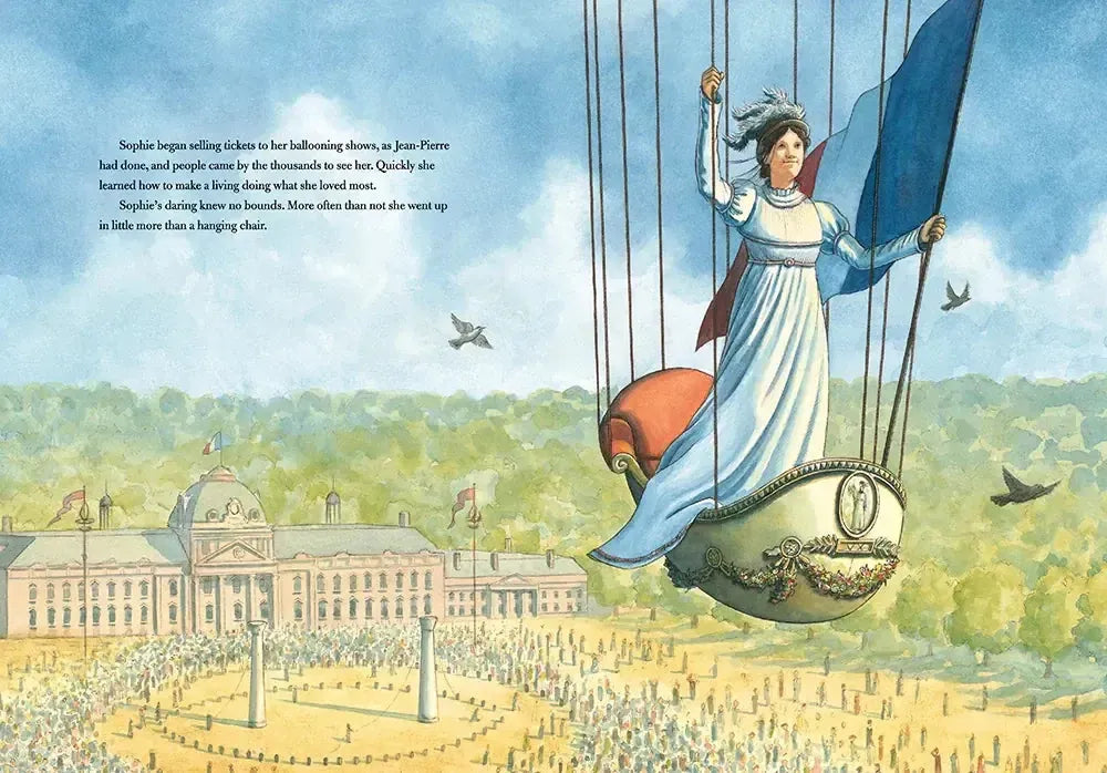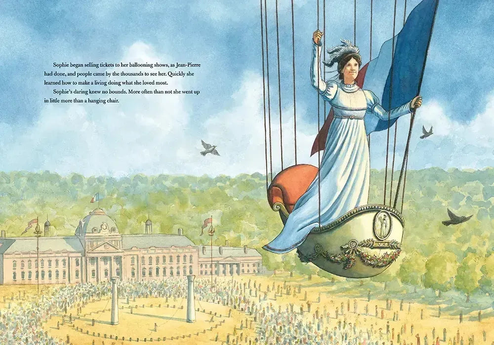 Take to the skies with the story of Sophie Blanchard, an extraordinary woman who is largely forgotten despite her claim to being the very first female pilot in history. In eighteenth-century France, “balloonomania” has fiercely gripped the nation . . . but all of the pioneering aeronauts are men until a shy girl comes along, devoted to her dream of flight. Sophie is not the first woman to ascend in a balloon, nor the first woman to accompany an aeronaut on a trip, but she will become the first woman to climb to the clouds and steer her own course.