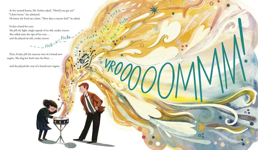 A gorgeous and empowering picture book biography about Evelyn Glennie, a deaf woman, who became the first full-time solo percussionist in the world. A robust author’s note brings further detail and highlights Evelyn’s own voice.