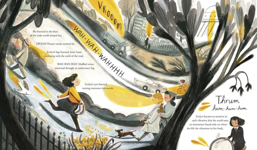 From the moment Evelyn Glennie heard her first note, music held her heart. She played the piano by ear at age eight, and the clarinet by age ten. But soon, the nerves in her ears began to deteriorate, and Evelyn was told that, as a deaf girl, she could never be a musician. What sounds Evelyn couldn’t hear with her ears, though, she could feel resonate through her body as if she, herself, were a drum. And the music she created was extraordinary. Evelyn Glennie had learned how to listen in a new way. And soon, the world was listening too.