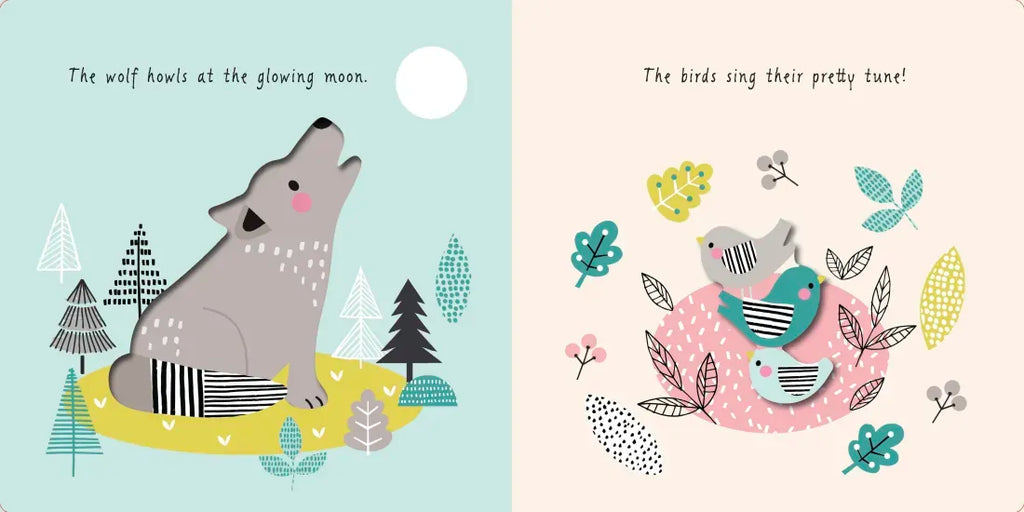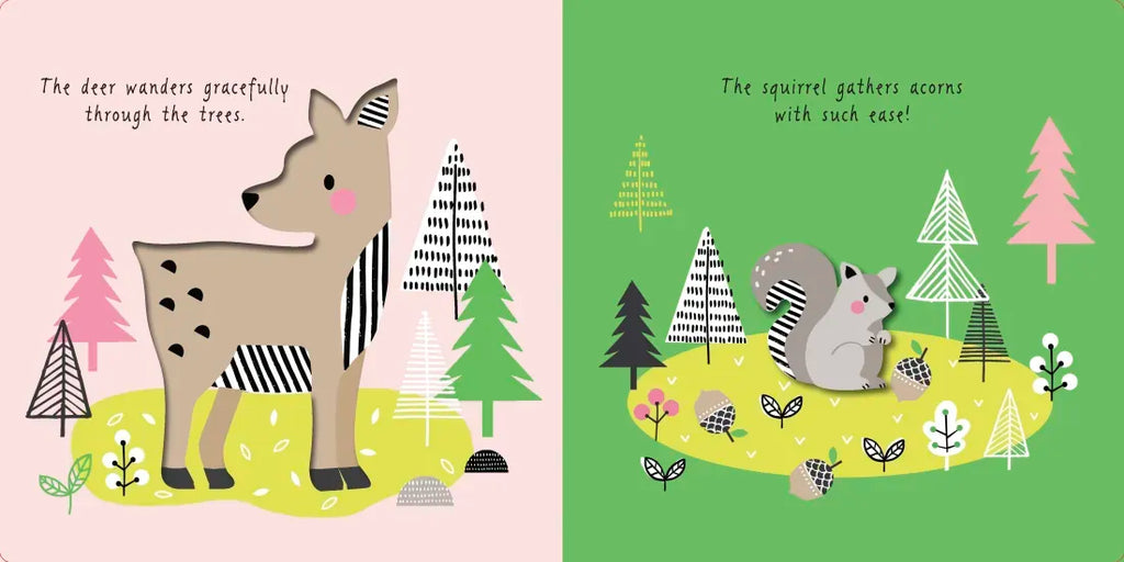 Watch the fox hunting for something to eat, join in with the singing birds and uncover the manyother charming animals that live in the forest, all in this colorful, interactive board book. While little ones marvel at our different forest friends, the rhyming text makes this the ideal book for helping toddlers identify names and find their first words. With raised elements on the page for curious fingers to follow and plenty of bright colors and fun patterns to point to, this is the perfect hands-on introduction to forest life that children and adults alike will enjoy!