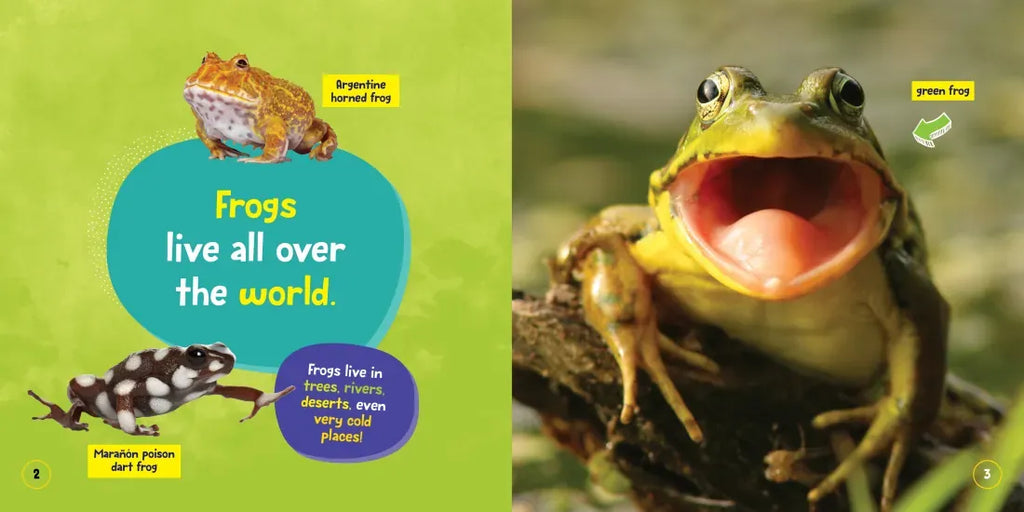 In these pages, little readers learn how this kid-favorite animal develops from a tiny egg to a chubby tadpole to a big-eyed, long-legged adult frog ready to hop, leap, and splash. Along the way, supersimple facts and vivid National Geographic photography introduce the youngest explorers to fabulous frogs of all sizes and colors.