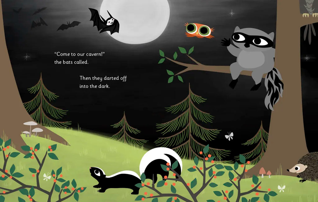 The bats have invited Little Owl to visit their cavern! He’s never been to that part of the forest and feels a shiver of excitement at the thought. But when Skunk reveals that he once saw something strange near the cavern, Little Owl worries about what he might find on the way. Good thing he’ll have his friend Raccoon by his side!