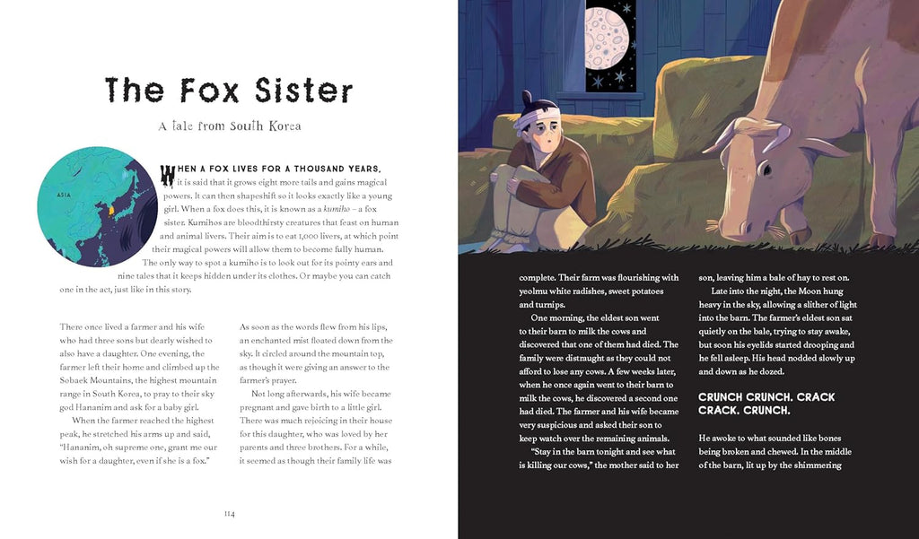 - Chilling tales include: The Vampire Skeleton (Canada and USA), The Luz Mala (Argentina), The Basilisk of Vilnius (Lithuania), The Bite of the Queen Rat (UK), The Fox Sister (South Korea), The Ghost on Pinjarra Bridge (Australia), The Devouring Gourd (East Africa)
