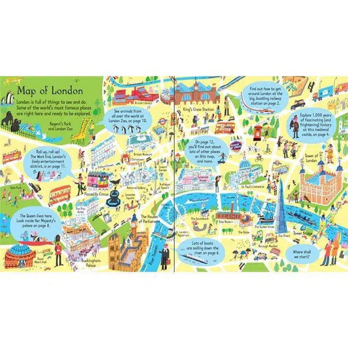In just 14 pages, you can visit and explore central London, the West End, and the River Thames all the way from Buckingham palace to the Tower of London. Beneath flaps big and small, you'll learn secrets of London's amazing underground railway, its storied history from Shakespeare's Globe to today's Houses of Parliament. You can get ideas of places to visit, whether it's parks, museums, shopping or hit shows. Each flap has a large, easy to find and lift thumb-hole, perfect for curious fingers.