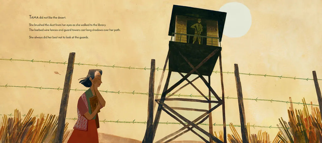 During World War II, Tama is sent to live in an incarceration camp in the desert. All Japanese Americans from the West Coast — elderly people, children, babies — now live in camps like Minidoka. To be who she is has become a crime, and Tama doesn’t know when or if she will ever leave. Trying not to think of the life she once had, she works in the incarceration camp’s tiny library, taking solace in pages bursting with colour and light, love and fairness. And she isn’t the only one. George waits each morning by the door, his arms piled with books checked out the day before. As their friendship grows, Tama wonders: Can anyone possibly read so much? Is she the reason George comes to the library every day? Maggie Tokuda-Hall and Yas Imamura’s beautifully illustrated, elegant love story features a photo of the real Tama and George — the author’s grandparents — and an unflinching and necessary afterword that helps readers to learn more about a time in history that continues to resonate.