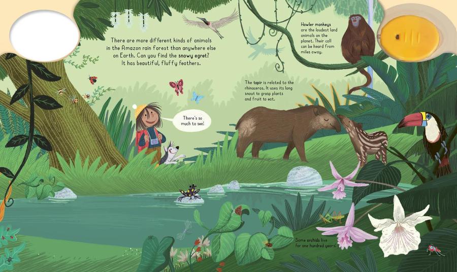 Young readers will love to explore the rain forest with this interactive book, which includes a UV flashlight and hidden animals to discover on every page!