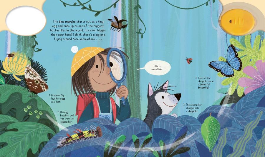 Children can dim the lights and explore the Amazon rain forest with Clara and her dog, Sparks, in this interactive book, which comes with a UV flashlight to use to find hidden animals on every page! This journey through the rain forest includes fun facts about the animals that live there, such as tapirs, monkeys, sloths, and jaguars, as well as a number of birds and butterflies, from the snowy egret to the blue morpho. This is the ideal nonfiction book for budding nature enthusiasts.