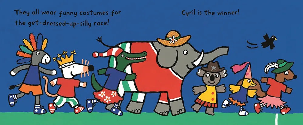 Join Maisy and her pals for Field Day! First is the egg-and-spoon race (oops, Eddie’s egg is a little too wobbly). No problem, there are lots more games to play — a wheelbarrow race, a three-legged race, and even a get-dressed-up-silly race. When it’s time to play ringtoss, Eddie’s trunk comes in handy, and in the relay race, Maisy and Charley run as fast as they can. Last of all comes a great big game of tug-of-war, where both teams fall down laughing at the end!