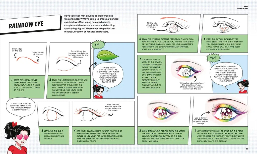 In Manga Drawing School, Mei guides you through every artwork step by step, from drawing simple faces and hairstyles to striking poses and action-packed fantasy scenes. You'll discover over 50 lessons that will help you master the skills you need to create manga characters and scenes that are packed with personality.