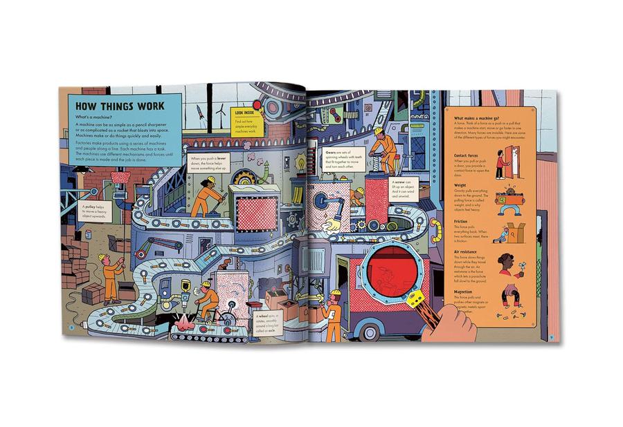 In your kitchen or bedroom, beneath city streets or far up in space, machines are at work day and night making, moving, building and even thinking for us. In this eye-catching book, you can explore the hidden inner workings of machines and inventions: from everyday objects like toasters and bicycles, to cutting-edge technologies such as pill-sized medical robots and super-fast maglev trains. The see-through magic lens will reveal how all these machines work, showing all the elements hidden within them from wires and pipes, to magnetic and gravitational forces.