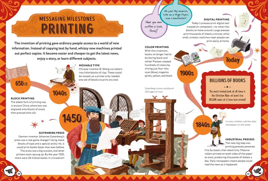 • Timelines of five world-changing inventions and how they shaped the evolution of communication.