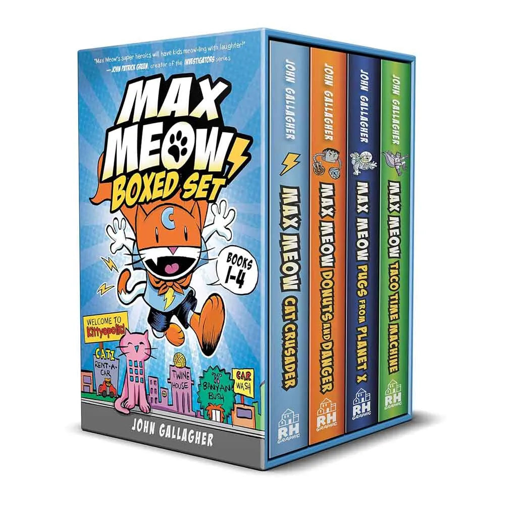 USA TODAY BESTSELLER! Meet Max Meow—a superhero with cat-itude! Can Max and his best friend save Kittyopolis from bad guys? Find out in the first-ever Max Meow boxed set! Includes the first four graphic novels in the series!