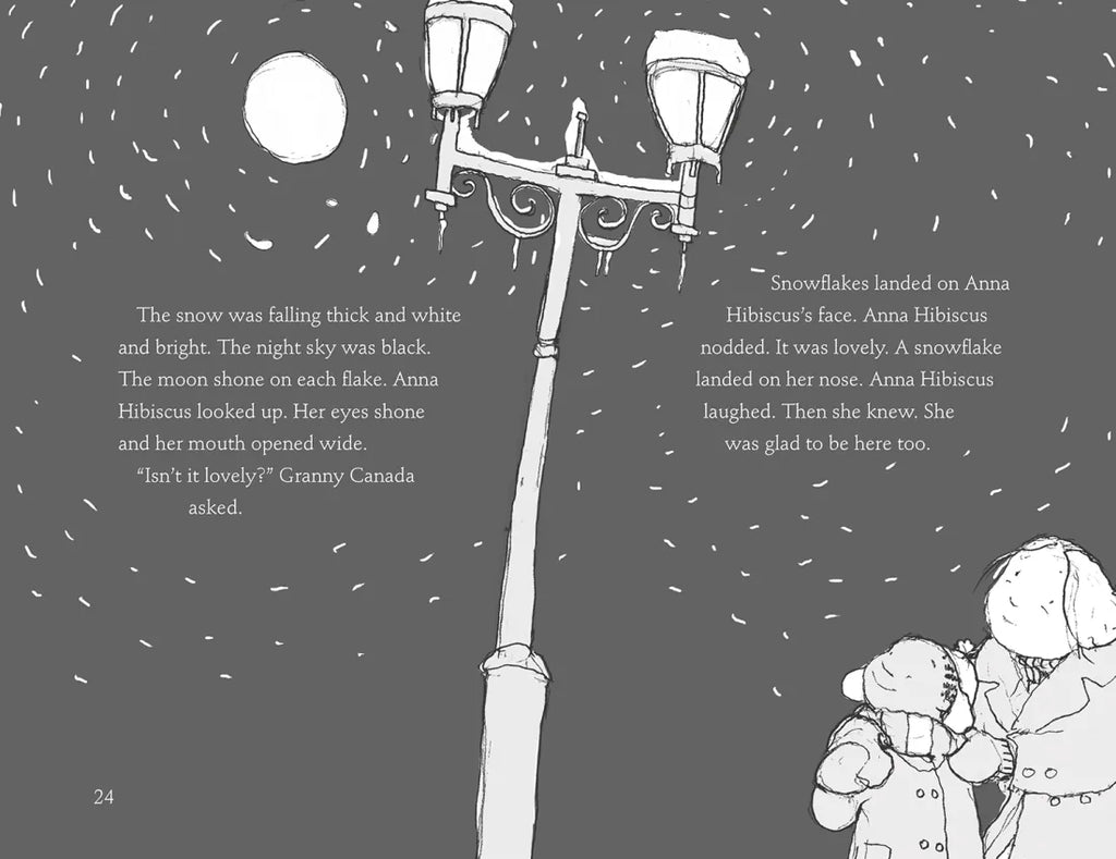 Anna Hibiscus has never been away from her big white house in Nigeria, where baby brothers, many cousins, parents, aunties, uncles, and grandparents are always nearby. But now she’s flying overseas on her own to visit Granny Canada and see snow for the first time! When she lands at the airport, Anna finds herself amid a sea of white faces in a place that is breathtakingly cold. Canada is very different, but Anna learns how to pull on toasty layers of clothing, warms up to Granny’s large dog (who does not live in a pack and bite people), hones her new talent for sledding, and celebrates cozy Christmas rituals—all while keenly missing her cousins. Told with warmth and humor and illustrated in delightful detail, this tale of finding family and belonging far away from home will resonate with every child who’s had to navigate an unfamiliar place.