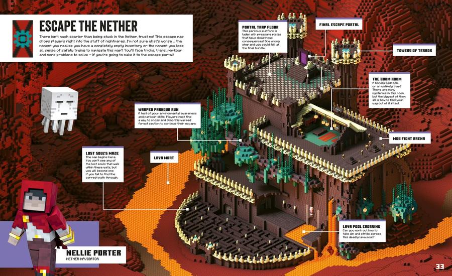 Epic Escape Rooms contains thirteen incredible builds to inspire you to construct the most inventive maps in Minecraft. Each one brings unique ideas and contraptions designed to test players and make it hard to escape! There’s a zombie prison break, pirate island, haunted house and an underground science lab, plus many more original builds.