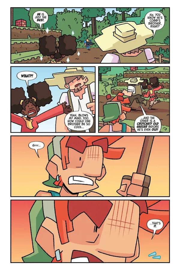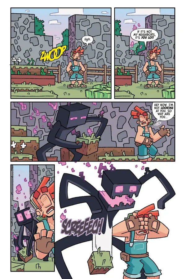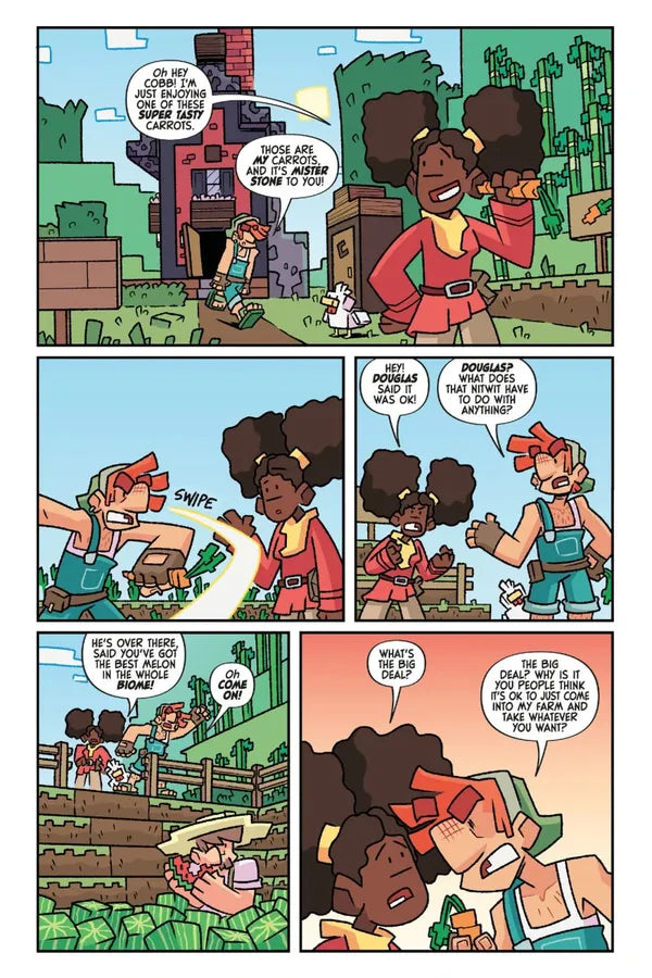 Farmer Cobb likes to keep his crops as neat as possible, which is frustrating when he has neighbors who like to chow down on his fresh produce without asking and villagers who can’t stop themselves from planting potatoes in his field without rhyme or reason. After a rough encounter with an Enderman he finally decides to get as far away from everyone and everything as he can . . . building a tower up into the sky!