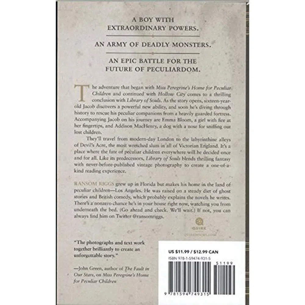 “Fans of the trilogy’s first two books will enjoy Library of Souls for its unique world, fast action, satisfying answers and a thorough tying up of loose ends.”—Free Lance-Star