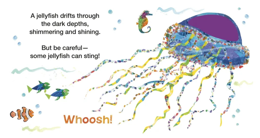 Greet a new friend with each turn of the page as you explore the ocean with Mister Seahorse. Interactive text encourages young readers to feel and think about each texture they encounter, and Eric Carle's colorful art sets each delightful scene. Classic characters come to life in this sensational story--perfect for little hands!
