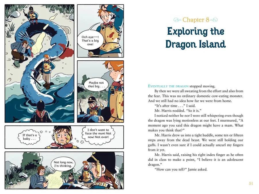 Join Cat and her friends as they adventure through a fantastical and historical Scotland in this first installment of the Sea Monsters series. Graphic novel panels are interspersed throughout the novel, making it an engaging read and the three books in the series have collectible posters meant to be pieced together to create one big poster.