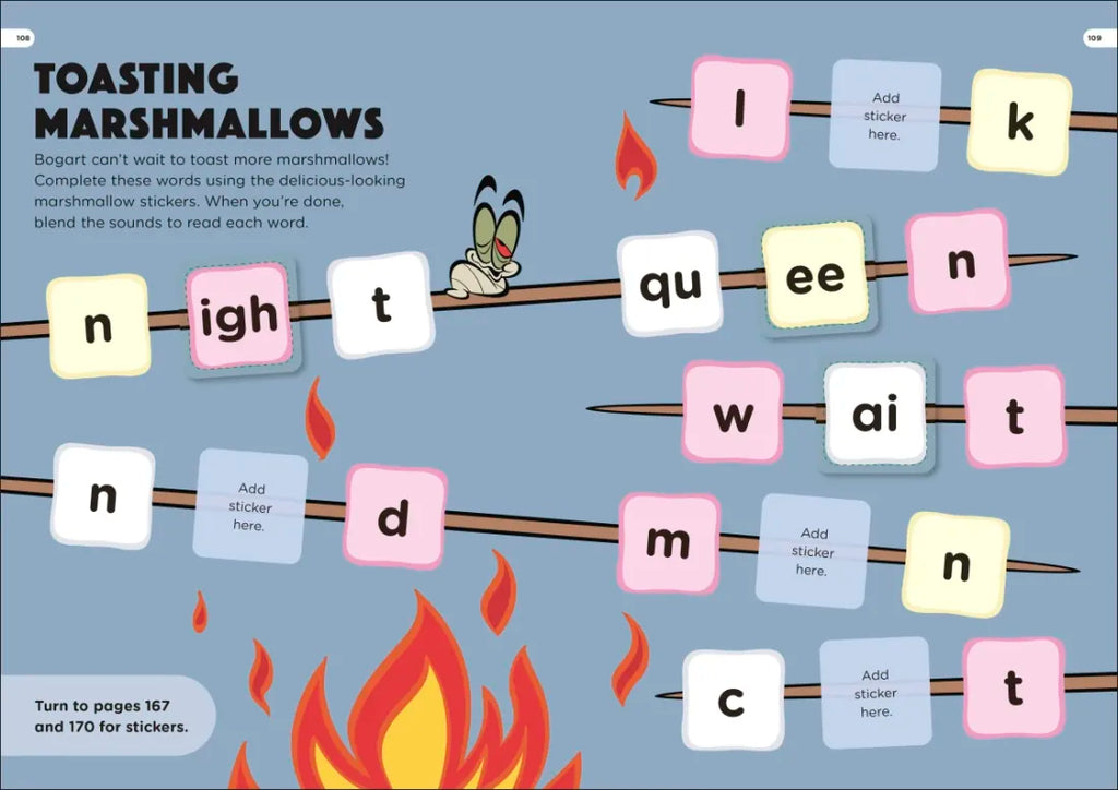 Short, engaging exercises 200+ stickers for fun, interactive sticker activities 51 letter-sound correspondences, from easiest to more complex (phases 2–3) QR codes to hear how phonemes (sounds) are pronounced Write-in activity pages Letter writing practice An easy-to-understand guide to phonics for parents And much more!