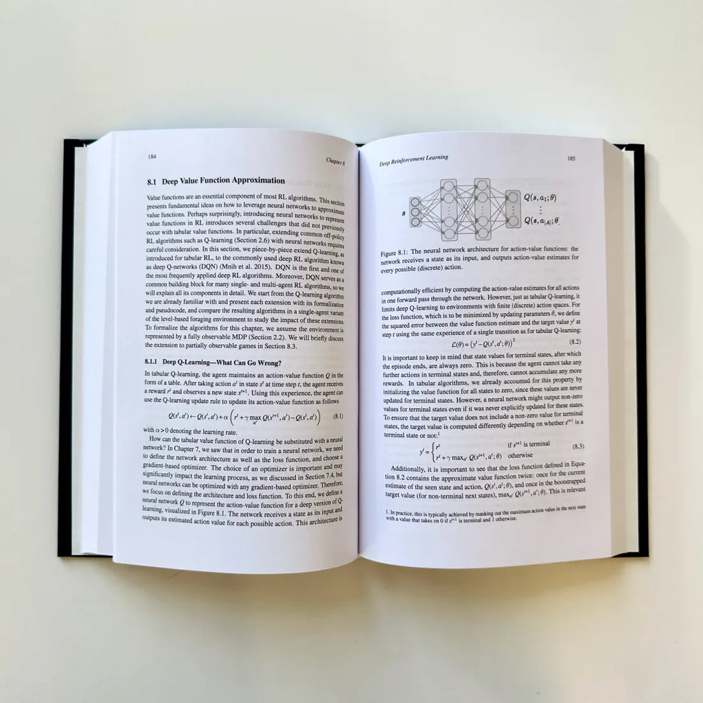 Multi-Agent Reinforcement Learning (MARL), an area of machine learning in which a collective of agents learn to optimally interact in a shared environment, boasts a growing array of applications in modern life, from autonomous driving and multi-robot factories to automated trading and energy network management. This text provides a lucid and rigorous introduction to the models, solution concepts, algorithmic ideas, technical challenges, and modern approaches in MARL. The book first introduces the field’s foundations, including basics of reinforcement learning theory and algorithms, interactive game models, different solution concepts for games, and the algorithmic ideas underpinning MARL research. It then details contemporary MARL algorithms which leverage deep learning techniques, covering ideas such as centralized training with decentralized execution, value decomposition, parameter sharing, and self-play. The book comes with its own MARL codebase written in Python, containing implementations of MARL algorithms that are self-contained and easy to read. Technical content is explained in easy-to-understand language and illustrated with extensive examples, illuminating MARL for newcomers while offering high-level insights for more advanced readers.