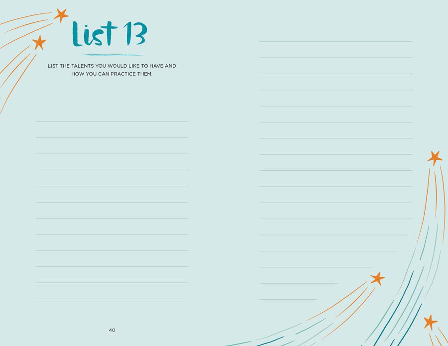 Start anytime, this undated list journal is the perfect place for children to write, scribble, dream, and record all the special stuff that makes them who they are!