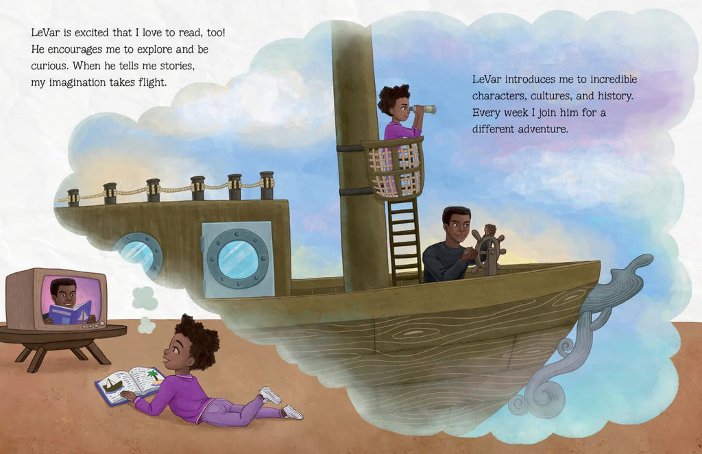 Ezra's friend LeVar always has a book to share. From playing in the snow, to decorating eggs, to eating pancakes with Paul Bunyan--Ezra and LeVar explore all different kinds of stories. Through imaginative play they discover new worlds, learn to be curious, and revel in reading. One day young Ezra meets LeVar Burton in real life! Soon afterward, Ezra discovers that his friends know LeVar from TV, too.