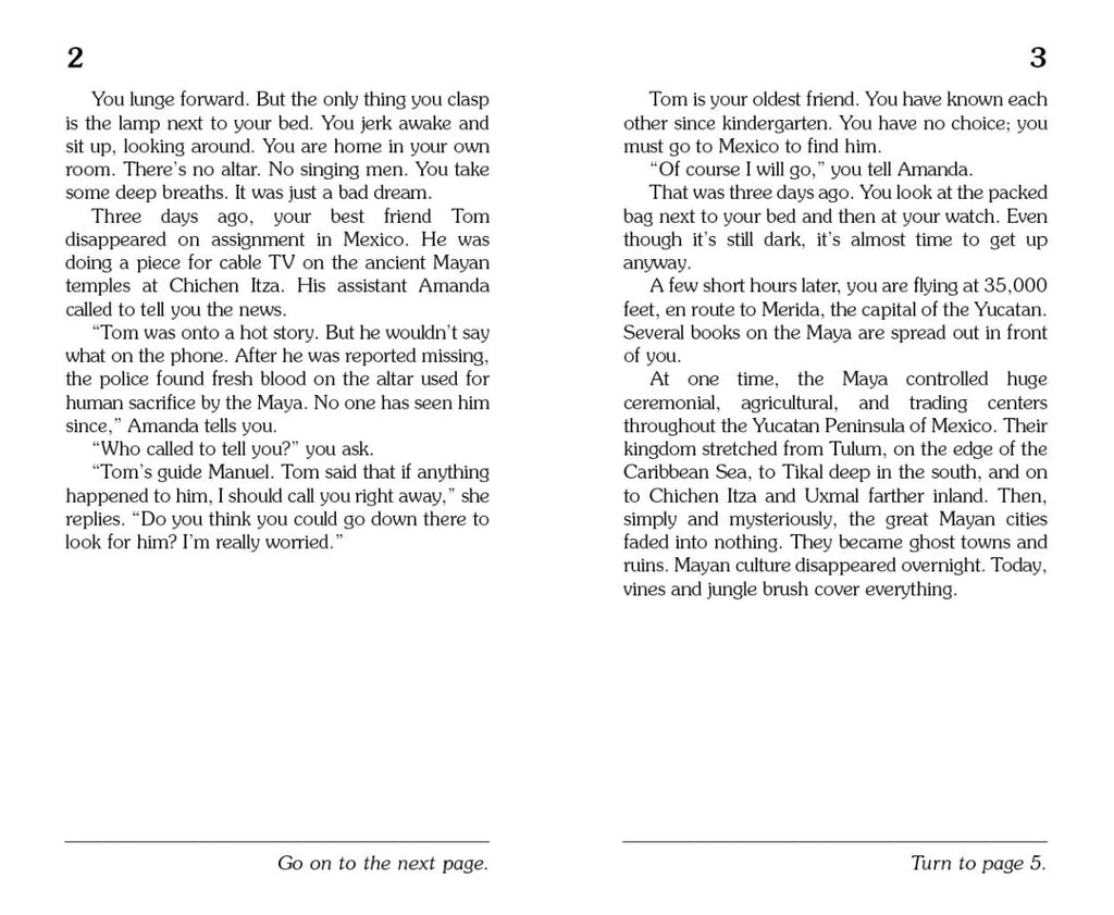 Your best friend Tom goes missing on assignment in Mexico, and YOU have to help find him. Do you take a potion that sends you back in time to the world of the Maya civilization or search for him in the present day? What secrets does Chichén Itzá hold? Will you become a great Mayan warrior or the next human sacrifice? Be careful, the choices YOU make might end in glory, disaster, or certain death.