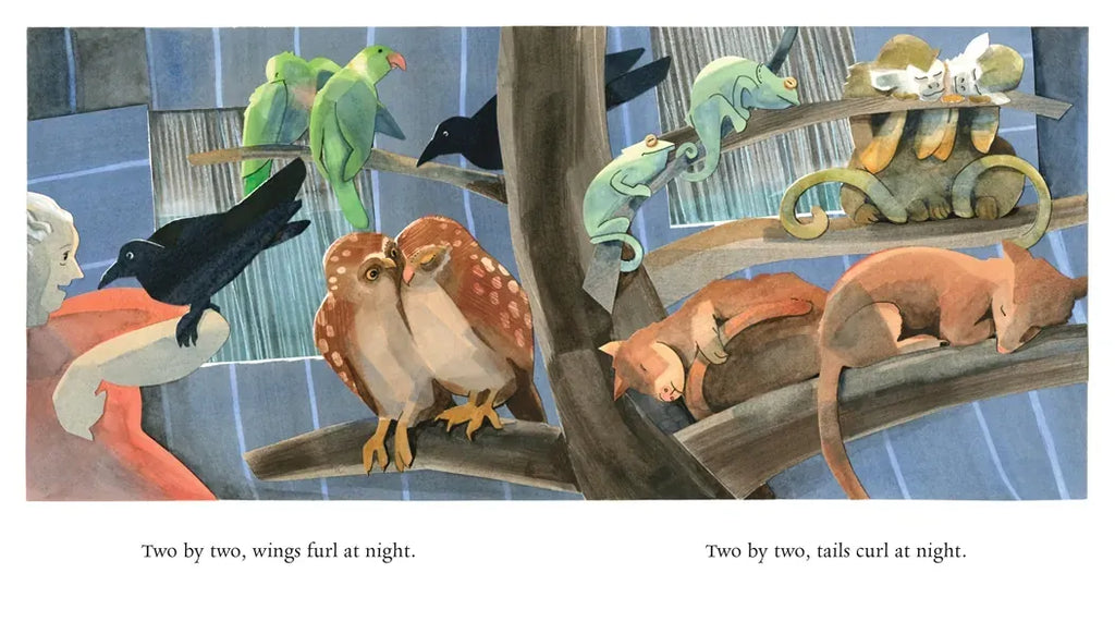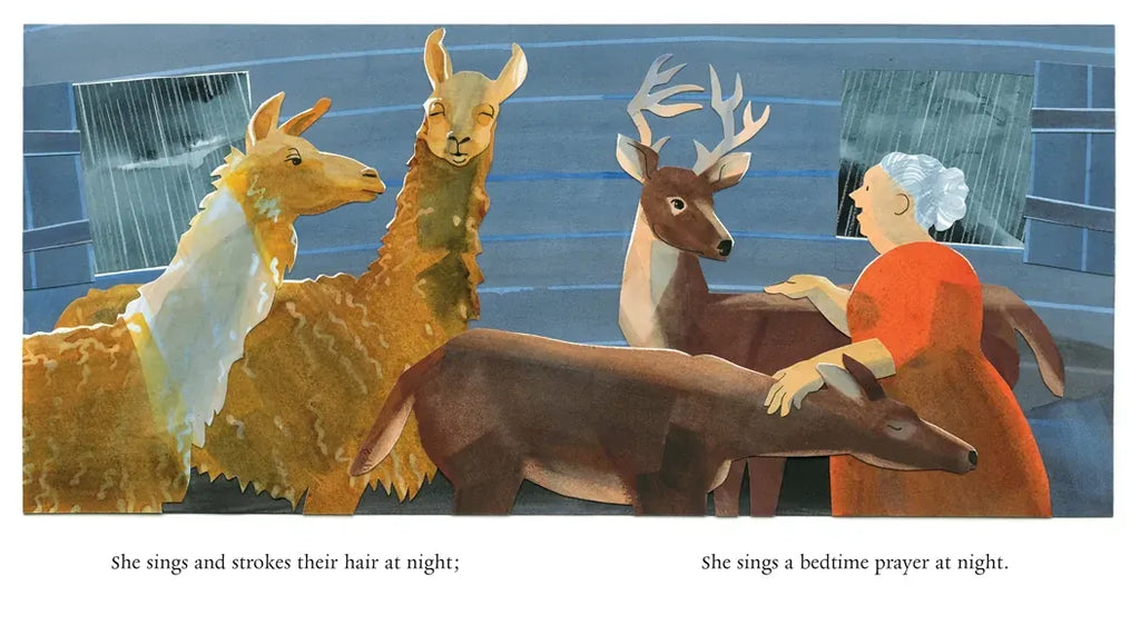 As Noah’s wife sings the animals to sleep, an age-old tale is told afresh in a soothing poetic form brought to life with beautiful collage illustrations.