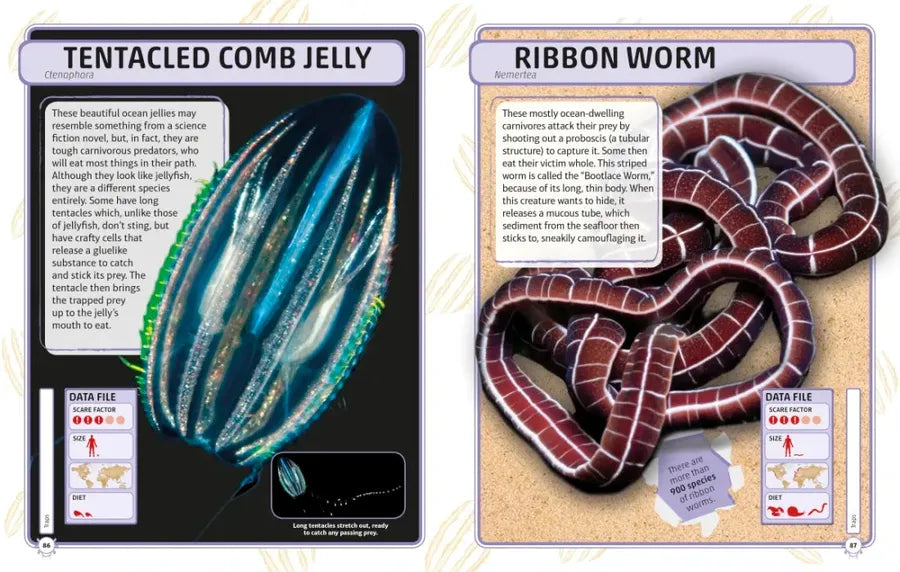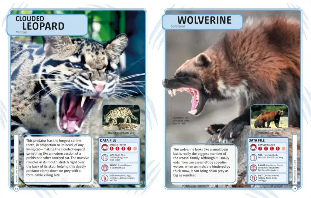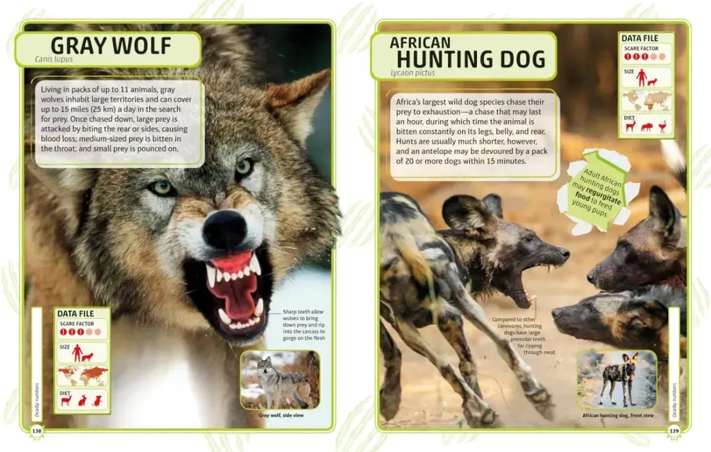 With more than 200 spectacular photos in the book, every page has a stunning image of the animal in action, with data files giving a visual guide to its size, distribution, diet, and habitat, as well as a rating of its "scare factor."