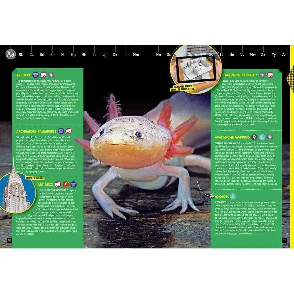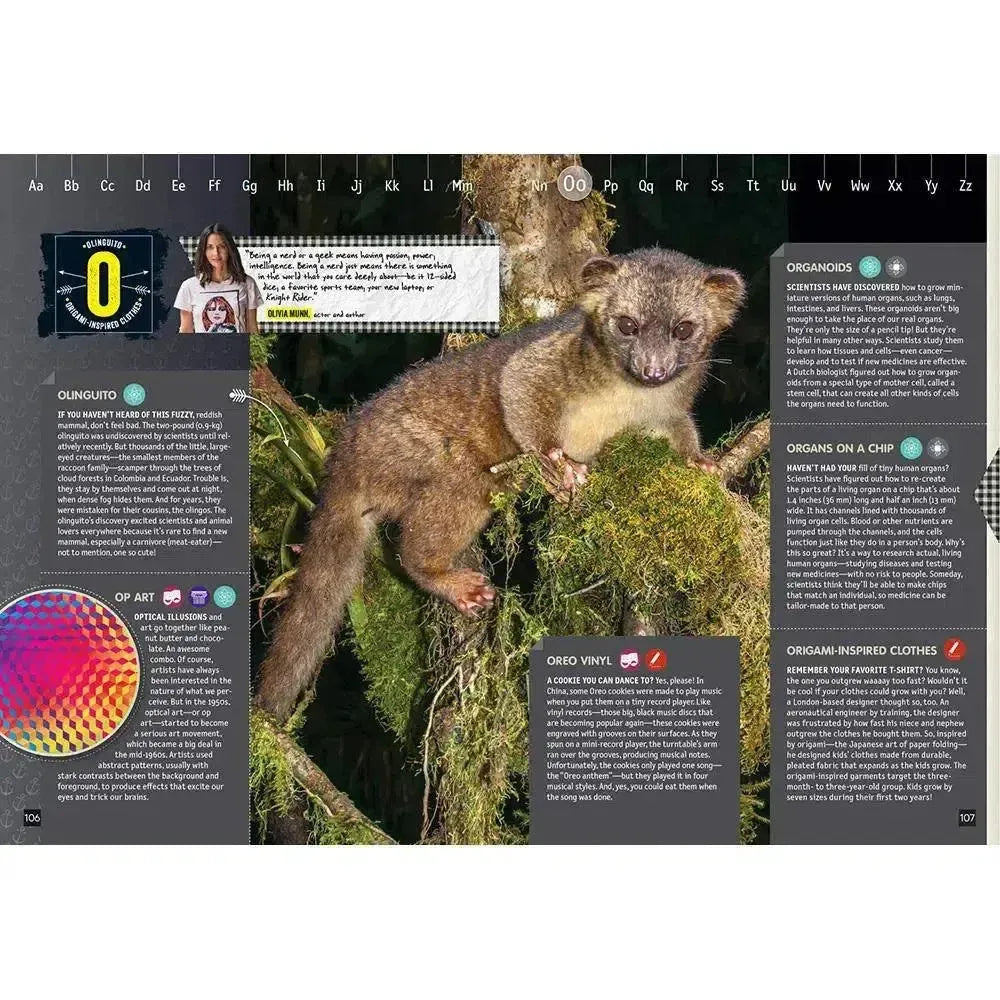 Inside, you'll find browsable, info-packed blurbs that'll give you the lowdown on everything from augmented reality to zydeco, with larger features that dive deep into fascinating topics like UFOs, pirates, artificial intelligence, and daring circus acts. You'll find out what kind of nerd you are with superfun flowchart quizzes. And you'll hear from the world's most notable (and quotable) Nerds of Note from history and today.