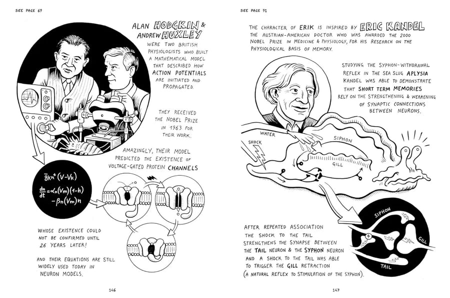 Welcome to Neurocomic, a visually captivating adventure through the brain. Neurocomic is populated by quirky creatures, bizarre landscapes and famous neuroscientists. Our nameless protagonist evades vindictive colossal squid, negotiates mysterious trap doors, battles Boschean narcotic demons and navigates forests of neurons to take you on a rapturous journey through the most complex organic structure in the universe. Neurocomic makes a baffling, mysterious subject approachable for the layman but it's also a wonderful object in its own right, one that cries out to be picked up and read. Produced in association with the Wellcome Trust, the largest medical charity in the world, Neurocomic is a wonderful introduction to the complexities of the brain.
